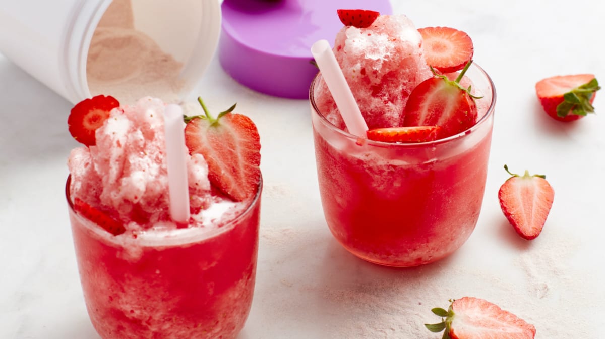 #2 Ρίξτε σε σφηνοπότηρα και διακοσμήστε κάθε σφηνάκι με μια φρέσκια φράουλα. Η τελειότητα!
